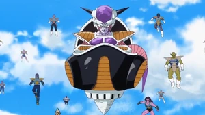 The small pod has anti-gravity equipment at the bottom and operates with dials and buttons installed inside.[4] It was able to fly super high-speed and it can also operate outside of space. Although the device itself is slower than Freeza himself it is used for him only for it's convenience.[5] In Dragon Ball Z: The Incredible Strongest versus Strongest, Koora himself was seen to possess a variation of this craft.