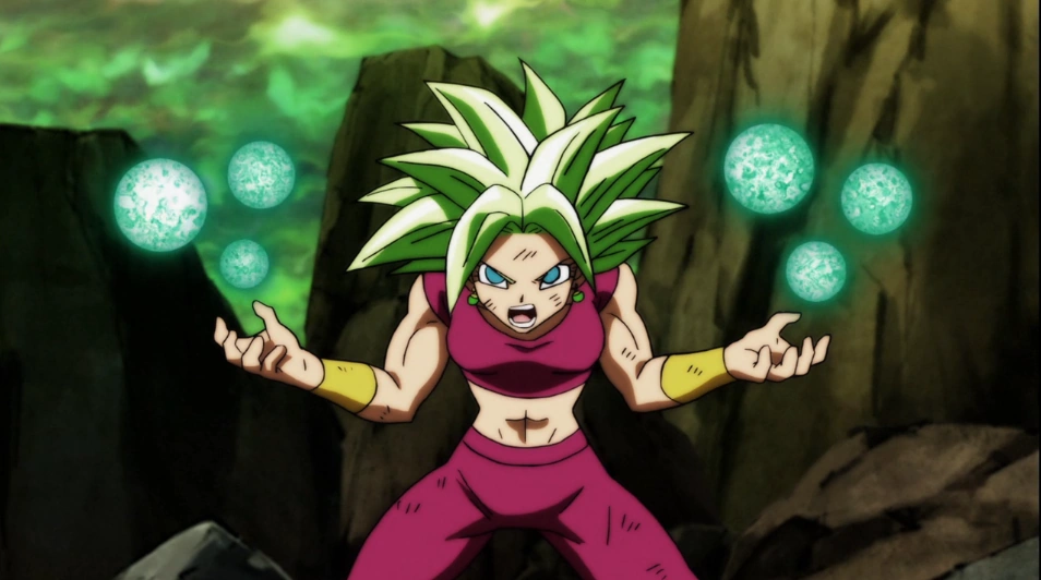 Kefla is able to conjure three spherical green-colored Kikōha that appear hovering on each hand.