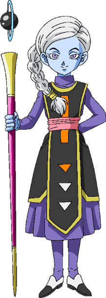 Acting as a guide to the Hakaishin and Kaiōshin of her universe, she acknowledges strongly on the difference of the good and the evil. Despite this, the clashes between them always get her blood racing.[1] She was very close to her Hakaishin, Rumoosh, evidenced by her mourning of him shortly after his erasure.
